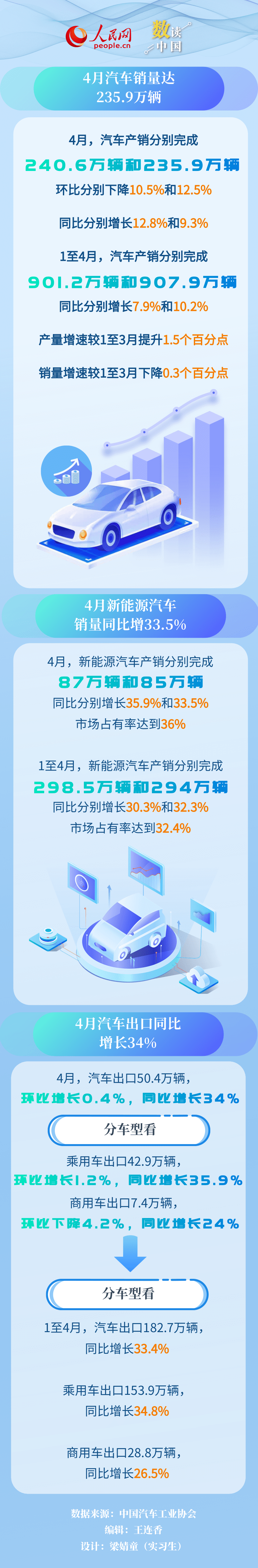益达平台:4月我国新能源汽车和汽车出口同比继续保持快速增长